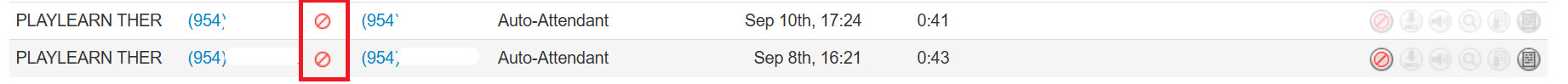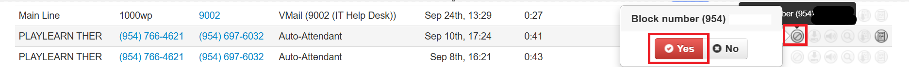 2. To immediately block a number for the entire domain, click the block number icon and then Yes.