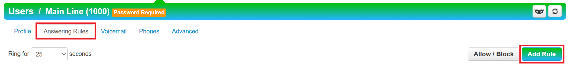 1. Click the Users tile and then select the line to apply the Answering Rules to.