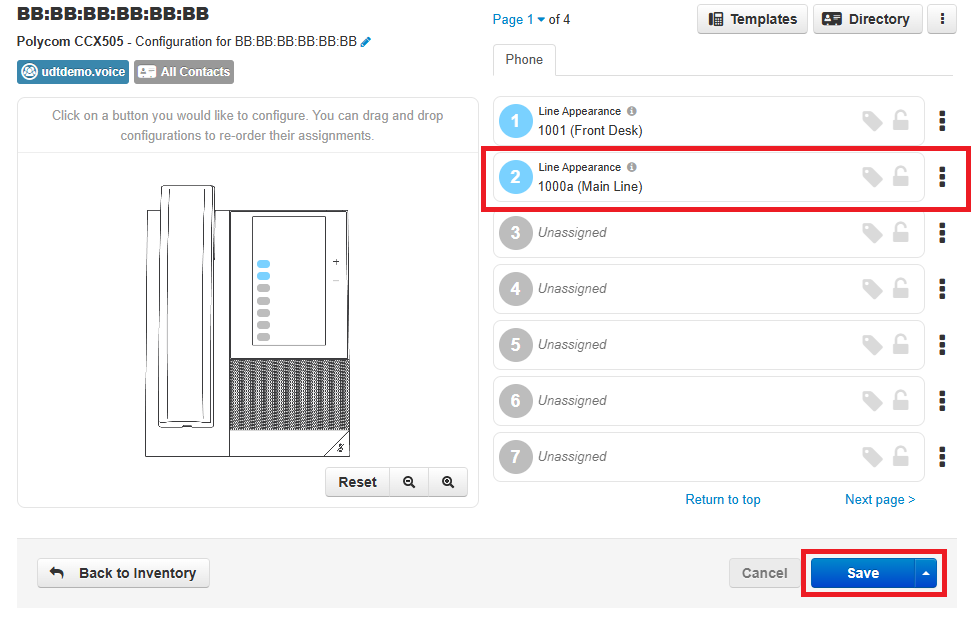 10. Add 1000a as a Line Appearance on 1001's Phone and click Save.image.png