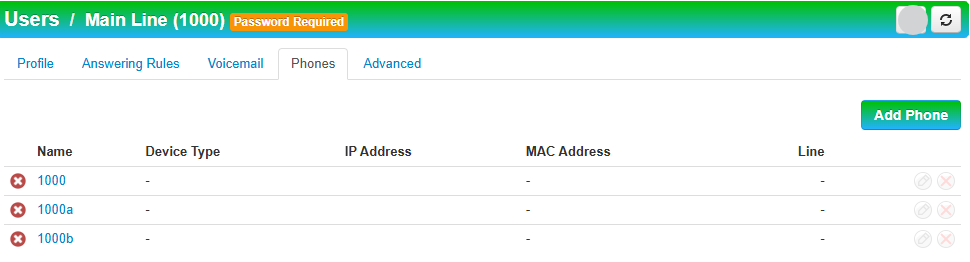 5. Click the Phones Tab and Add Phone.image.png6. Create Sub Extension 1000a and define Emergency Address.