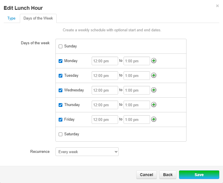 Example Time Frames for Office Hours and Lunch Hour