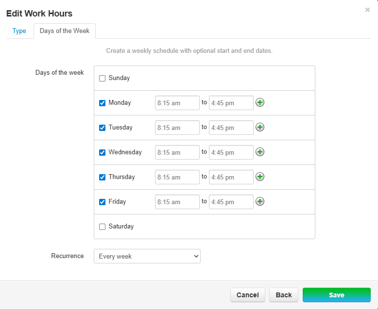 - Office Hours defined (Time Frames)