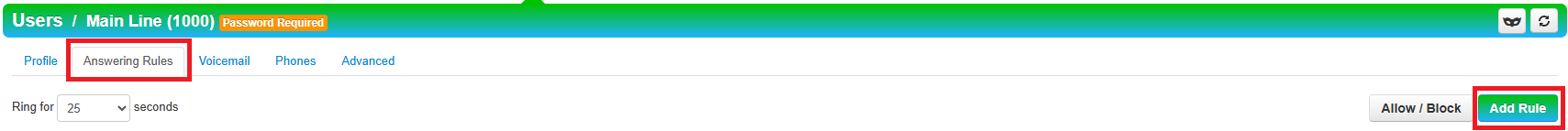 6. Click the Answering Rules tab and then Add Rule.