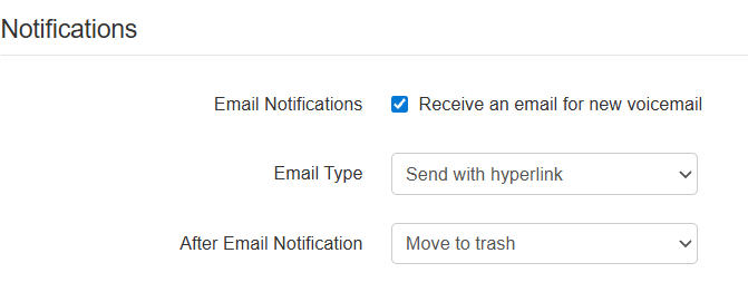 3. Under Notifications, Check "Receive an email for new voicemail"